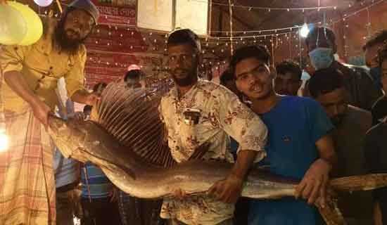 ময়ূরপঙ্খী মাছ-BGN24 বিশালাকৃতির ‘ময়ূরপঙ্খী’ নামক সামুদ্রিক প্রজাতির ৩টি মাছ উঠেছে সিলেটের বন্দরবাজারের জালালবাজারে আয়োজিত মেলায়। বিরল প্রজাতির ‘ময়ূরপঙ্খী’ মাছ মাত্র ৩টি এনেছিলাম সিলেটে। সিলেটে এ মাছ সচরাচার পাওয়া যায় না।