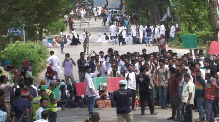 ঝিনাইদহের ভেটেরিনারি কলেজের শিক্ষার্থীদের ডিভিএম ডিগ্রির দাবিতে সড়ক অবরোধ, পিবিআই’র বিরুদ্ধে শিক্ষার্থীদের উপর গাড়ি চালানোর অভিযোগ। সাইফুল ইসলামঃ ঝিনাইদহ সরকারী ভেটেরিনারি কলেজে ডক্টর অব ভেটেরিনারি মেডিসিন (ডিভিএম) ডিগ্রি প্রদানের দাবিতে